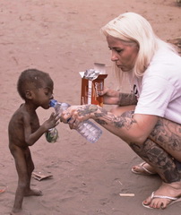 In this photo, Anja is feeding him crackers and water, after which she softly scooped him up in her arms and took him to the hospital.